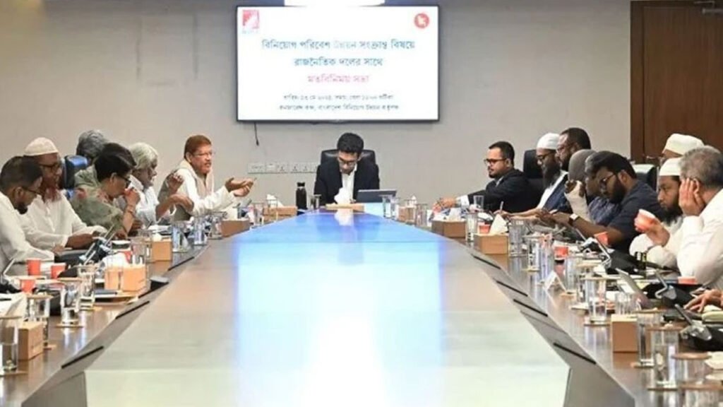 বাংলাদেশে টেকসই বিনিয়োগ পরিবেশ নিশ্চিতকরণের লক্ষ্যে নীতিগত ধারাবাহিকতা, চলমান সংস্কার কার্যক্রম এবং এর সাম্প্রতিক অগ্রগতির বিষয়ে দেশের শীর্ষস্থানীয় রাজনৈতিক দলের পরামর্শ ও সুপারিশ গ্রহণের লক্ষ্যে মঙ্গলবার বাংলাদেশ বিনিয়োগ উন্নয়ন কর্তৃপক্ষ (বিডা) একটি মতবিনিময় সভার আয়োজন করে।