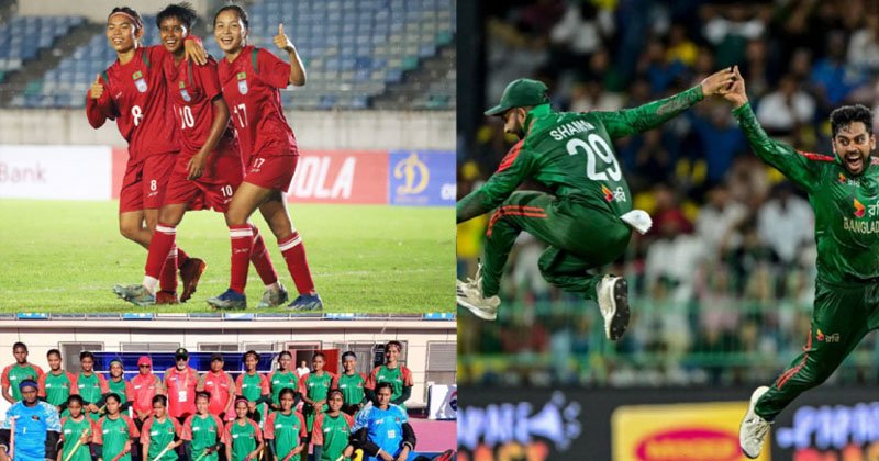 বাংলাদেশের ক্রীড়াঙ্গনে আজ শনিবার (৫ জুলাই) এক উৎসবের দিন। তিনটি ভিন্ন দেশে, তিনটি ভিন্ন মঞ্চে, তিনটি ভিন্ন সময়ে, তিনটি ভিন্ন খেলা। সবকটিতেই জয়ের গল্প লিখেছে বাংলাদেশ। কখনও হকির স্টিক হাতে ঝড় তুলেছে হকির আগামী দিনের তারকারা, কখনও আবার গোল বন্যায় উল্লাসে ভাসিয়েছে বাংলার মেয়েরা। আর শ্রীলঙ্কায় তো অনেকটা অসাধ্য সাধন করেছে মেহেদী হাসান মিরাজের দল।