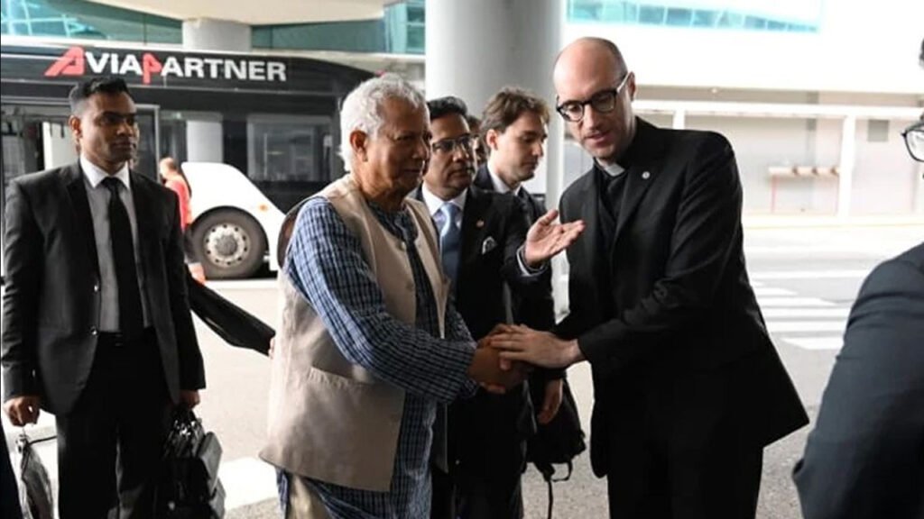 শুক্রবার বাংলাদেশ সময় সন্ধ্যা ৬টা ২০ মিনিটের দিকে প্রধান উপদেষ্টা ও তার সফরসঙ্গীদের বহনকারী বিমানটি রোমে পৌঁছায়। সেখানে ইতালিতে নিযুক্ত বাংলাদেশের রাষ্ট্রদূত প্রধান উপদেষ্টাকে স্বাগত জানান।