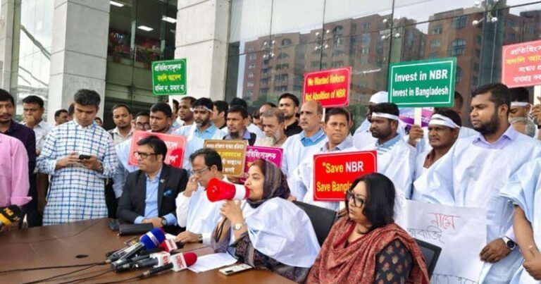 জাতীয় রাজস্ব বোর্ডের (এনবিআর) চলমান সংকট নিরসনে আগামীকাল বৃহস্পতিবার আন্দোলনকারীদের ডেকেছেন অর্থ উপদেষ্টা ড. সালেহউদ্দিন আহমেদ। অর্থ মন্ত্রণালয়ের জনসংযোগ কর্মকর্তা গাজী তৌহিদুল ইসলাম স্বাক্ষরিত এক